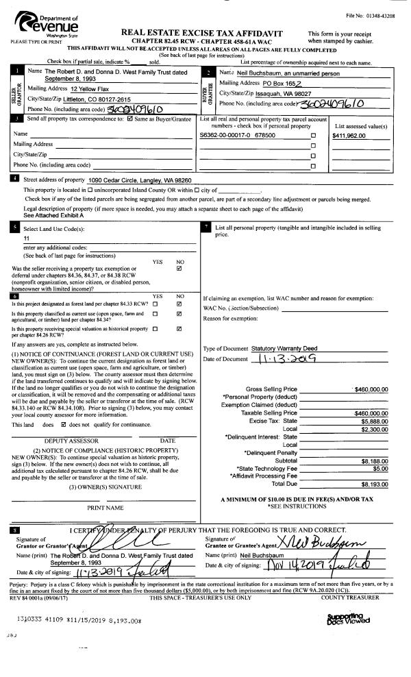 | 1 | 11/13/2019 | WD | Warranty Deed | WEST TRUSTEE, ROBERT D | BUCHSBAUM, NEIL | | | $460,000.00 | 41109 | 4475586 |