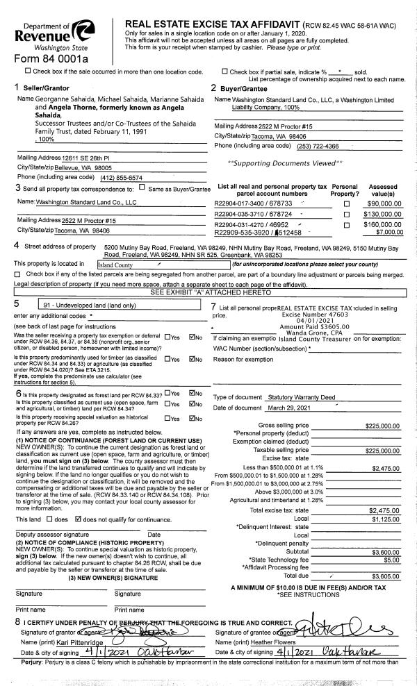 | 2 | 03/29/2021 | WD | Warranty Deed | SAHAIDA, GEORGE | WASHINGTON STANDARD LAND CO., LLC | | | $225,000.00 | 47603 | 4515320 |