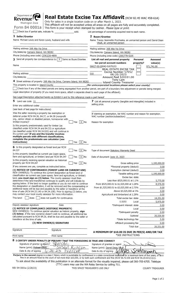 | 1 | 06/15/2023 | WD | Warranty Deed | LEWIS, MICHAEL | PROCHASKA, TRACEY JEANNETTE | | | $1,195,000.00 | 57052 | 4561264 |