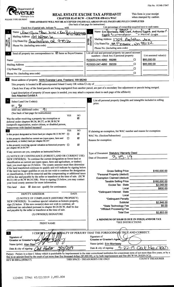 | Mailing Address: | KATHRYN A CLARK HUNTER P EGGINK AND ANTHONY E EGGINK 1704 BOYLSTON AVE SEATTLE, WA 98122 | % Ownership: | 100.0000000000% |