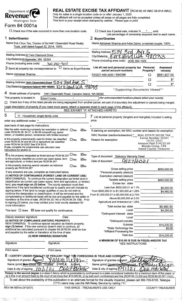 | 1 | 09/27/2021 | WD | Warranty Deed | TAN TRUSTEE, POH CHOO | SHARMA, ABHISHEK | | | $850,000.00 | 50301 | 4530492 |