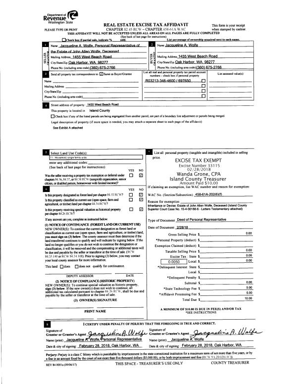 | 4 | 02/28/2018 | WD | Warranty Deed | WOLFE, JOHN A | WOLFE, JACQUELINE A | | | $0.00 | 33115 | 4440001 |