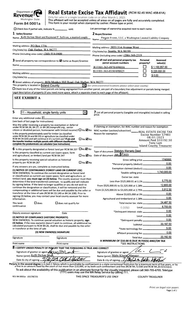 | 1 | 07/31/2023 | WD | Warranty Deed | SHORT, KELLI D | PINGUIN EVENTS, LLC | | | $1,740,000.00 | 57483 | 4562949 |