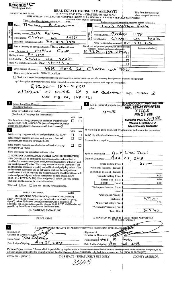 | 1 | 08/28/2018 | QCD | Quit Claim Deed | ECONOMU, TIMOTHY B | FOOTE, LOUIS MATTHEW | | | $28,000.00 | 35665 | 4450780 |