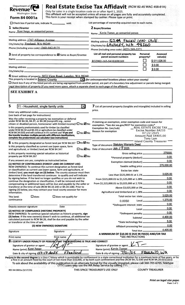 | 1 | 07/17/2025 | WD | Warranty Deed | JUNGE, KENT | TURNER, KEVIN | | | $275,000.00 | 64233 | 4588633 |