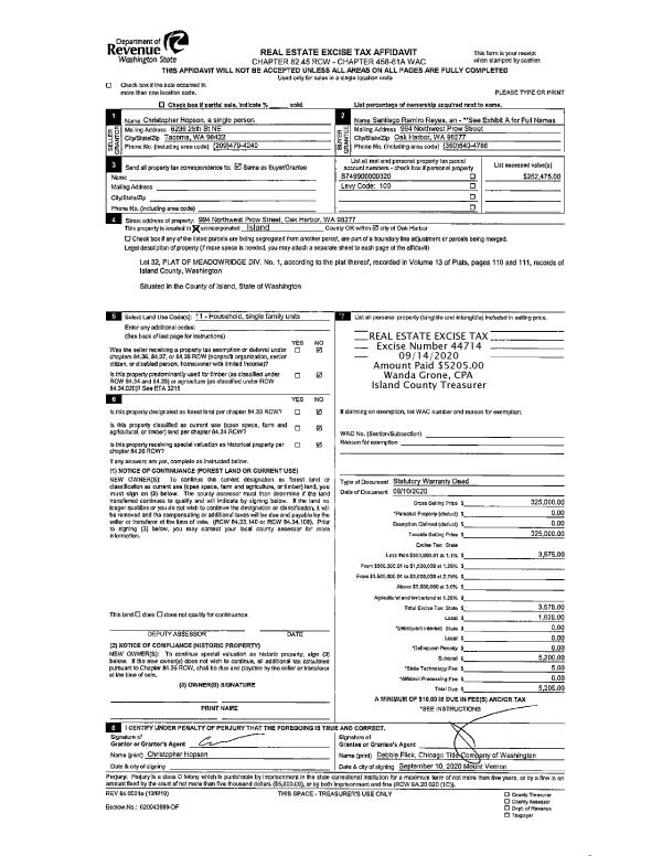 | 1 | 09/10/2020 | WD | Warranty Deed | HOPSON, CHRISTOPHER R | REYES, SANTIAGO RAMIRO | | | $325,000.00 | 44714 | 4496346 |