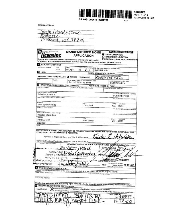 | Mailing Address: | 368 LAGOON POINT RD GREENBANK, WA 98253 | % Ownership: | 100.0000000000% |