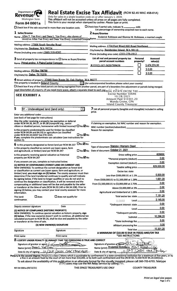 | 1 | 10/21/2021 | WD | Warranty Deed | VAN EVERY, ALLEN T | ROBINSON, RODERICK | | | $629,000.00 | 50646 | 4532463 |