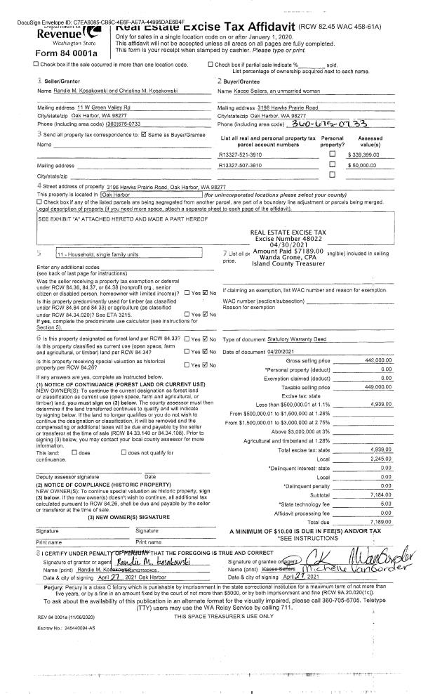 | 1 | 04/20/2021 | WD | Warranty Deed | KOSAKOWSKI, RANDIE M | SELLERS, KACEE | | | $449,000.00 | 48022 | 4517869 |