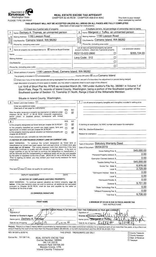 | 1 | 06/04/2019 | WD | Warranty Deed | THOMAS, ZACHARY A | TUFFEY, MARGART J | | | $545,000.00 | 38994 | 4465477 |
