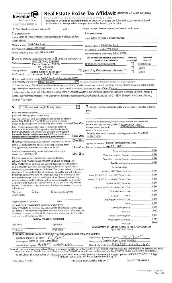 | 6 | 08/01/1983 | REC | Real Estate Contract | Unknown | FERREL, ORVILLE G | | | $20,000.00 | 32474 | 414383 |
