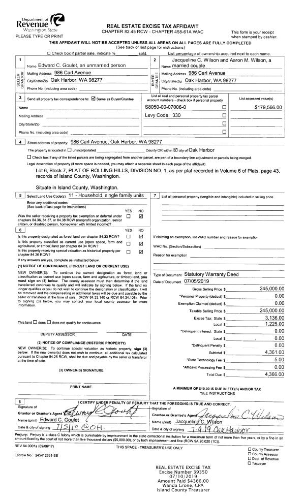 | 5 | 07/05/2019 | WD | Warranty Deed | GOULET, EDWARD C | WILSON, JACQUELINE C | | | $245,000.00 | 39350 | 4466944 |
