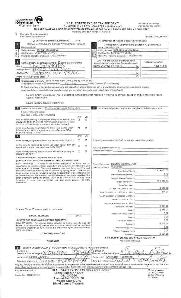 | 3 | 07/29/2020 | WD | Warranty Deed | SAMPLES, SAMUEL W | SALOMONE, CHRISTOPHER R | | | $529,000.00 | 44204 | 4493691 |