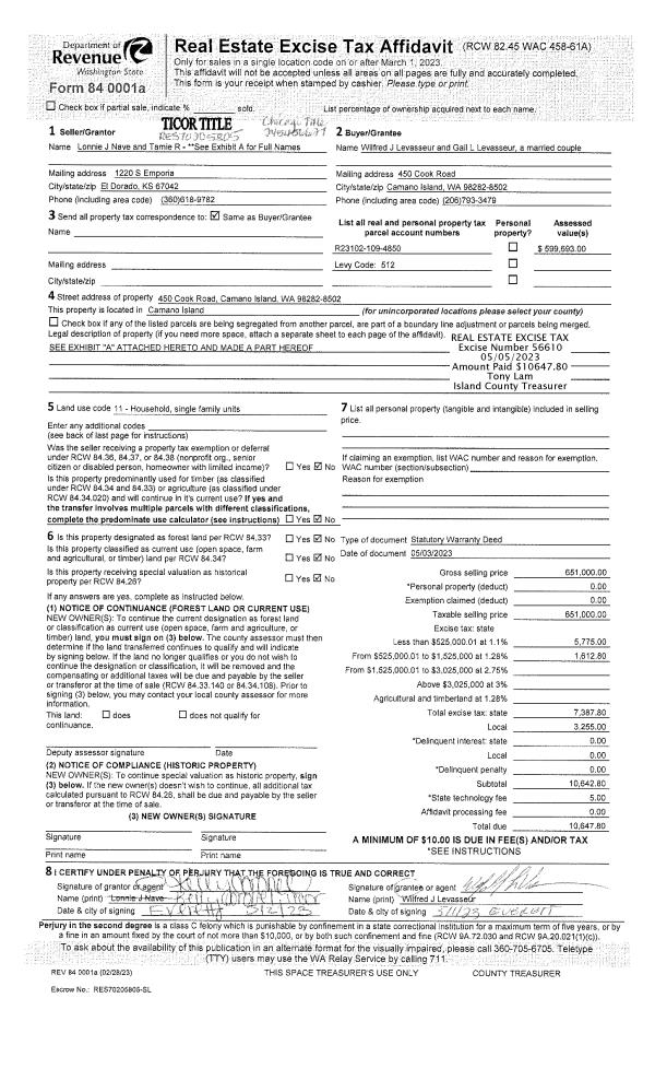 | 1 | 05/03/2023 | WD | Warranty Deed | NAVE, TAMIE R & LONNIE J | LEVASSEUR, WILFRED J | | | $651,000.00 | 56610 | 4559582 |