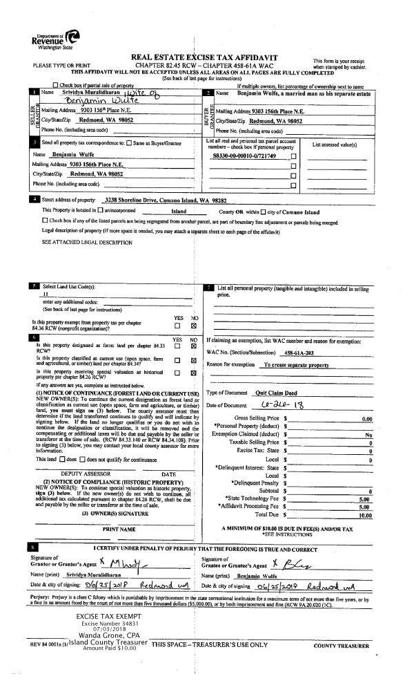 | 1 | 06/26/2018 | QCD | Quit Claim Deed | WULFE, BENJAMIN | WULFE, BENJAMIN | | | $0.00 | 34831 | 4447319 |