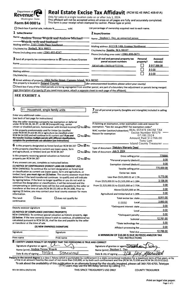 | 1 | 07/05/2024 | WD | Warranty Deed | WOJCIK, ANDREW MICHAEL | DAY, STEPHEN L | | | $770,000.00 | 60579 | 4574352 |
