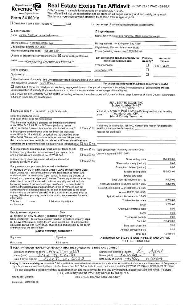 | Mailing Address: | NANCY M. MAIER 164 LIVINGSTON BAY ROAD CAMANO ISLAND, WA 98282 | % Ownership: | 100.0000000000% |
