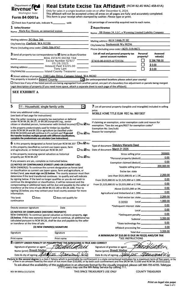| 2 | 03/21/2025 | WD | Warranty Deed | HIXSON, MARLA KAY | SB HOMES 24, LLC | | | $200,000.00 | 62927 | 4583672 |