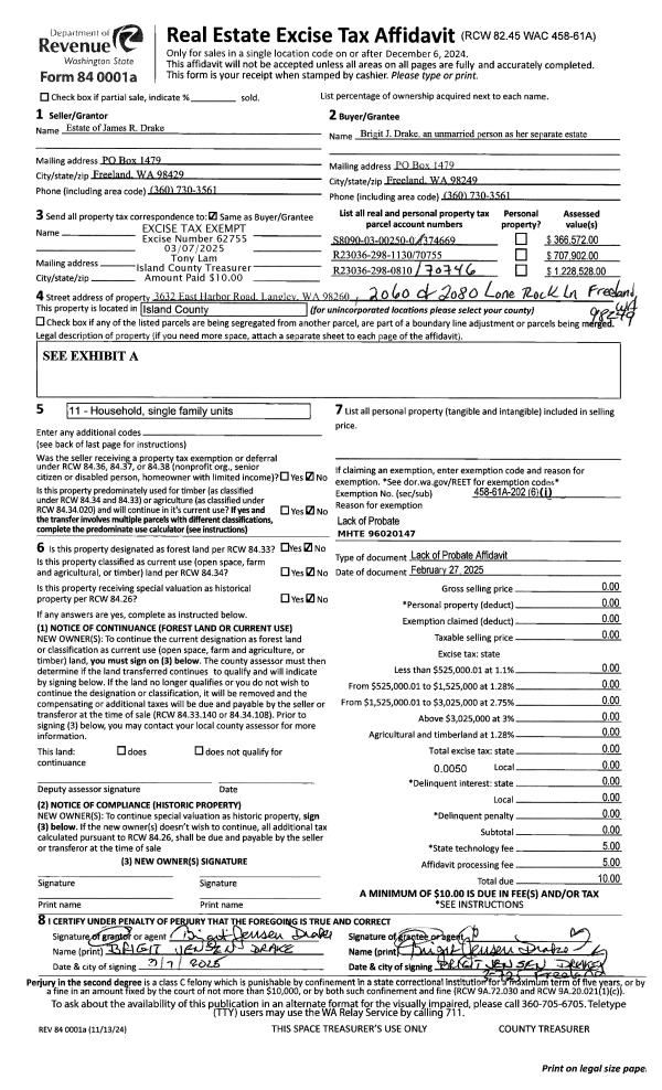 | Mailing Address: | 530 NE 6TH ST COUPEVILLE, WA 98239 | % Ownership: | 100.0000000000% |