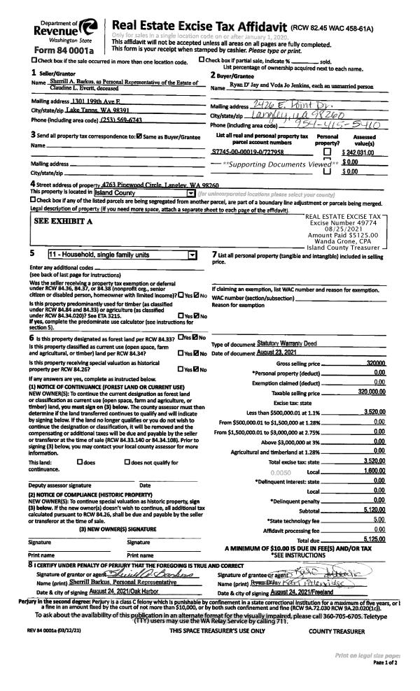 | 1 | 08/23/2021 | WD | Warranty Deed | EVERTT, CLAUDINE | D'JAY, RYAN | | | $320,000.00 | 49774 | 4527623 |
