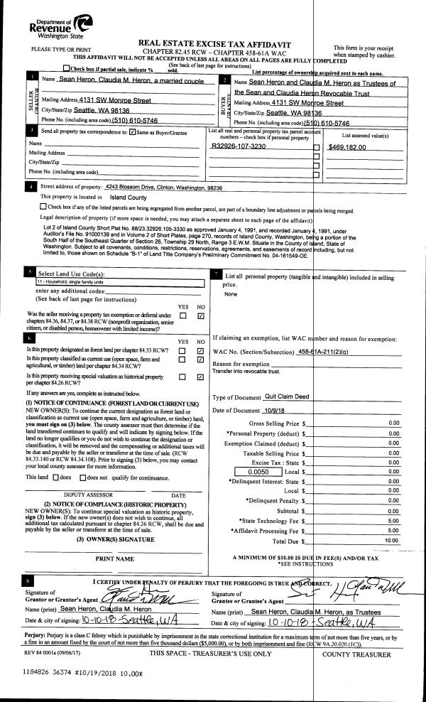 | Mailing Address: | 700 NW CROSBY AVE TRLR 141 OAK HARBOR, WA 98277 | % Ownership: | 100.0000000000% |