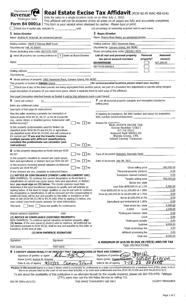 | 3 | 07/08/2022 | WD | Warranty Deed | KRAYNAK, ANDREA M | NEEM, SHARON R | | | $500,000.00 | 53821 | 4548365 |