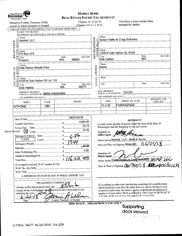 | 2 | 04/01/2016 | MANHOME | Manufactured Home | KESTREL LLC | HALKO, SUSAN | | | $4,900.00 | 34677 | |