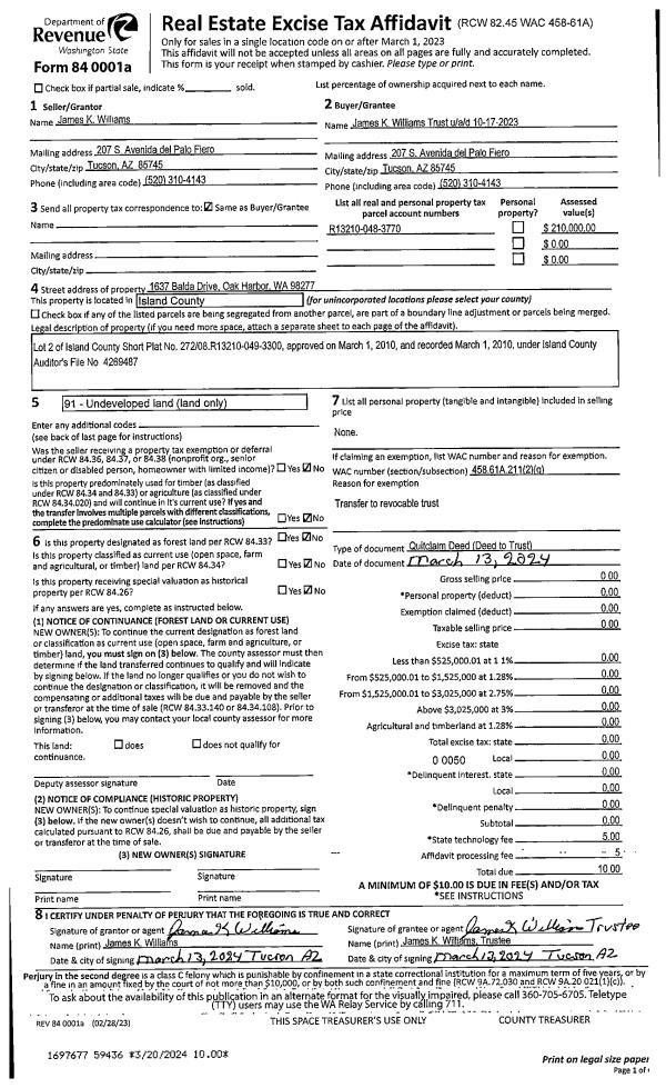 | Mailing Address: | 2298 VAN DAM RD COUPEVILLE, WA 98239 | % Ownership: | 100.0000000000% |
