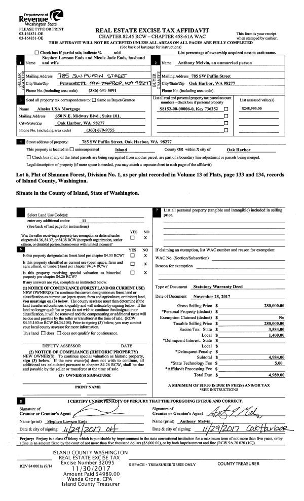 | 3 | 11/28/2017 | WD | Warranty Deed | EADS, STEPHEN LAWSON | MELVIN, ANTHONY | | | $280,000.00 | 32095 | 4434948 |