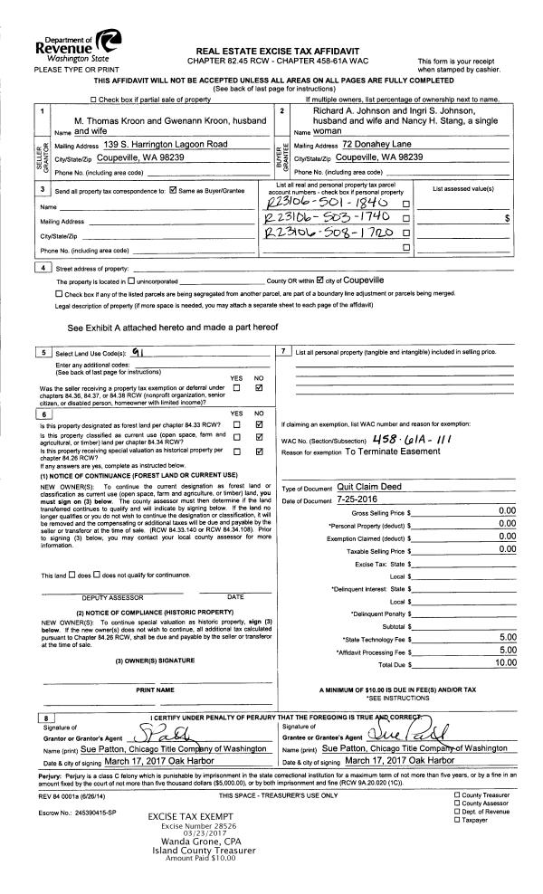 | 2 | 03/14/2017 | QCD | Quit Claim Deed | KROON, M. THOMAS | | | | | 0 | 4418941 |