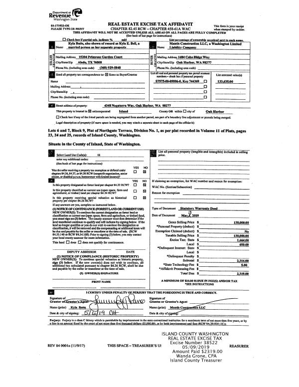 | 2 | 05/03/2019 | WD | Warranty Deed | BOTTS, KYLA | MANTIS CONSTRUCTION, LLC | | | $130,000.00 | 38522 | 4463453 |