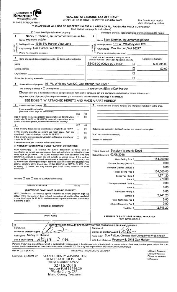 | 2 | 02/06/2018 | WD | Warranty Deed | THEUNE, NANCY K | SIMMER, SCOTT | | | $154,000.00 | 32972 | 4439345 |