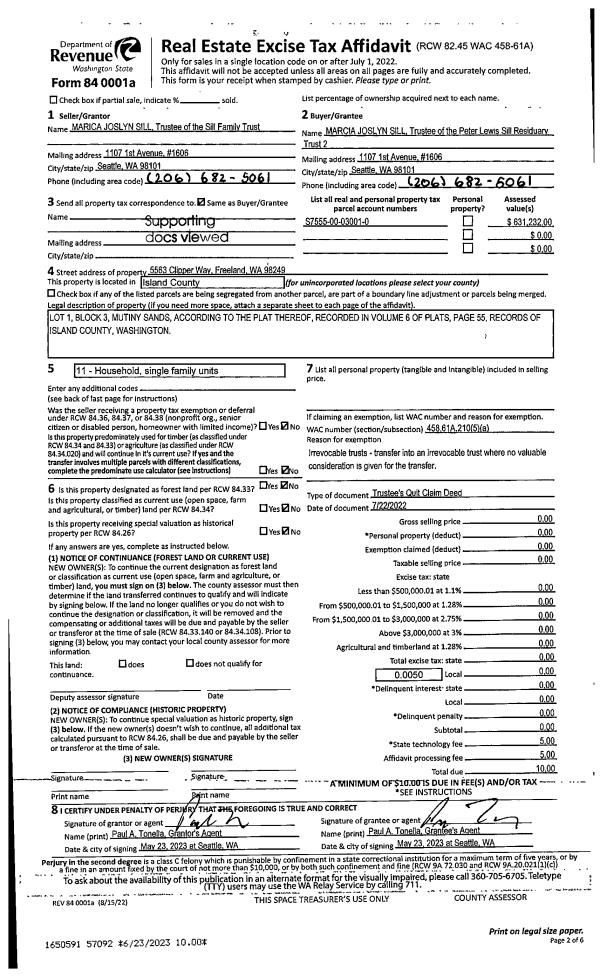 | 1 | 07/22/2022 | QCD | Quit Claim Deed | SILL FAMILY TRUST | SILL, MARCIA JOSLYN TTEE | | | $0.00 | 57092 | 4561483 |