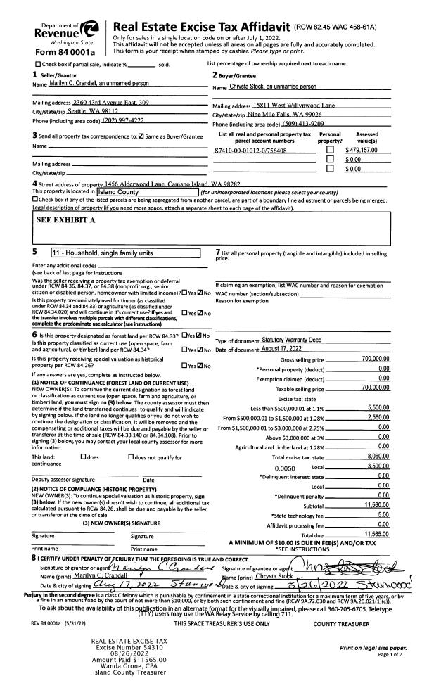 | 2 | 08/17/2022 | WD | Warranty Deed | CRANDALL, MARILYN C | STOCK, CHRYSTA | | | $700,000.00 | 54310 | 4550299 |