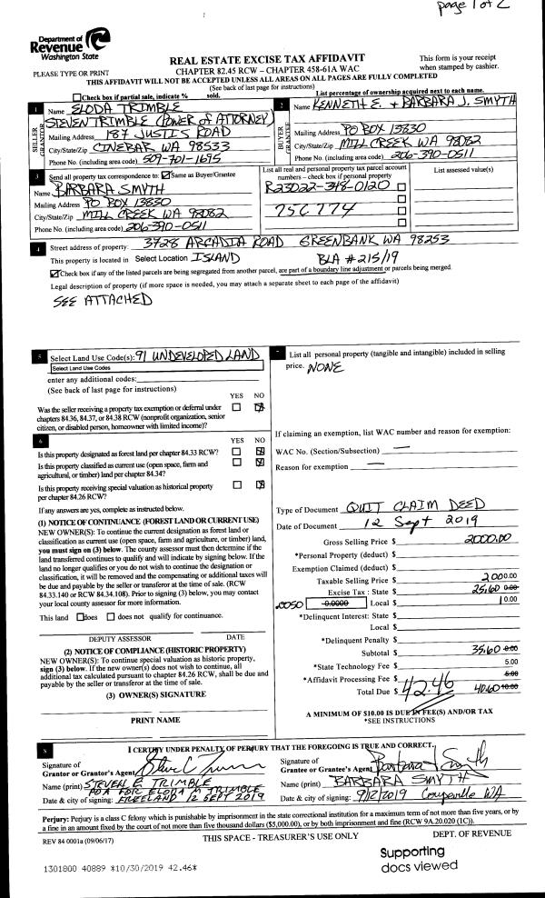 | Mailing Address: | 3742 ARCADIA RD GREENBANK, WA 98253 | % Ownership: | 100.0000000000% |