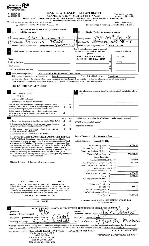 | 1 | 08/18/2020 | WD | Warranty Deed | INN-OVATION HOTEL GROUP, LLC | WISSLER, GAVIN | | | $770,000.00 | 44329 | 4494362 |