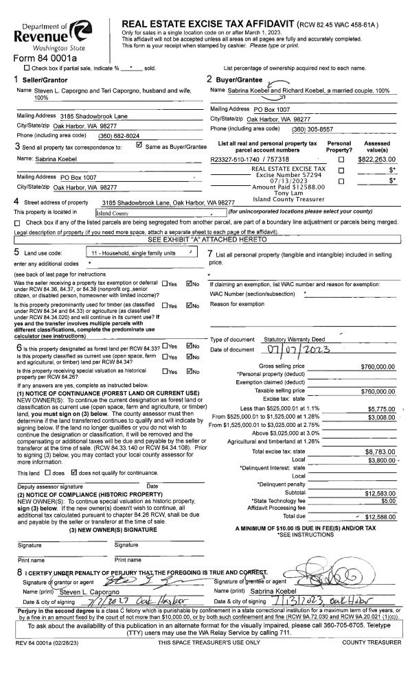 | 1 | 07/07/2023 | WD | Warranty Deed | CAPORGNO, STEVEN L | KOEBEL, RICHARD | | | $760,000.00 | 57294 | 4562242 |