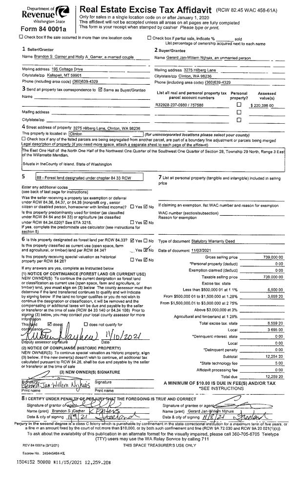 | Mailing Address: | 3275 HILBERG LN CLINTON, WA 98236 | % Ownership: | 100.0000000000% |