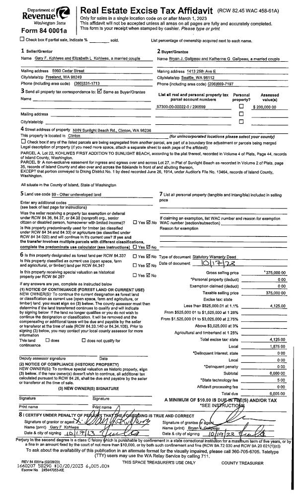 | Mailing Address: | 2251 AUSTIN LN OAK HARBOR, WA 98277 | % Ownership: | 100.0000000000% |
