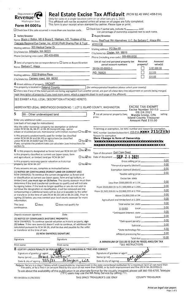 | 2 | 09/21/2021 | QCD | Quit Claim Deed | CREC 401(K) PROFIT SHARING | REAL TRUST IRA ALTERNATIVES LLC | | | $0.00 | 50153 | 4529824 |