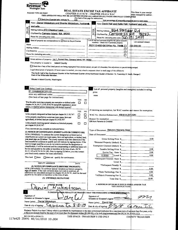 | 1 | 08/08/2018 | WD | Warranty Deed | WICKSTROM, DANIEL | HALL, DAVID | | | $0.00 | 35491 | 4450015 |