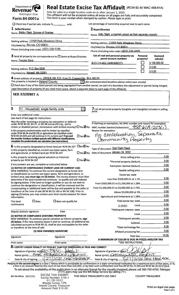| 2 | 01/25/2022 | QCD | Quit Claim Deed | STARK, BOBBY | STARK, HOLLY | | | $0.00 | 51811 | 4538768 |