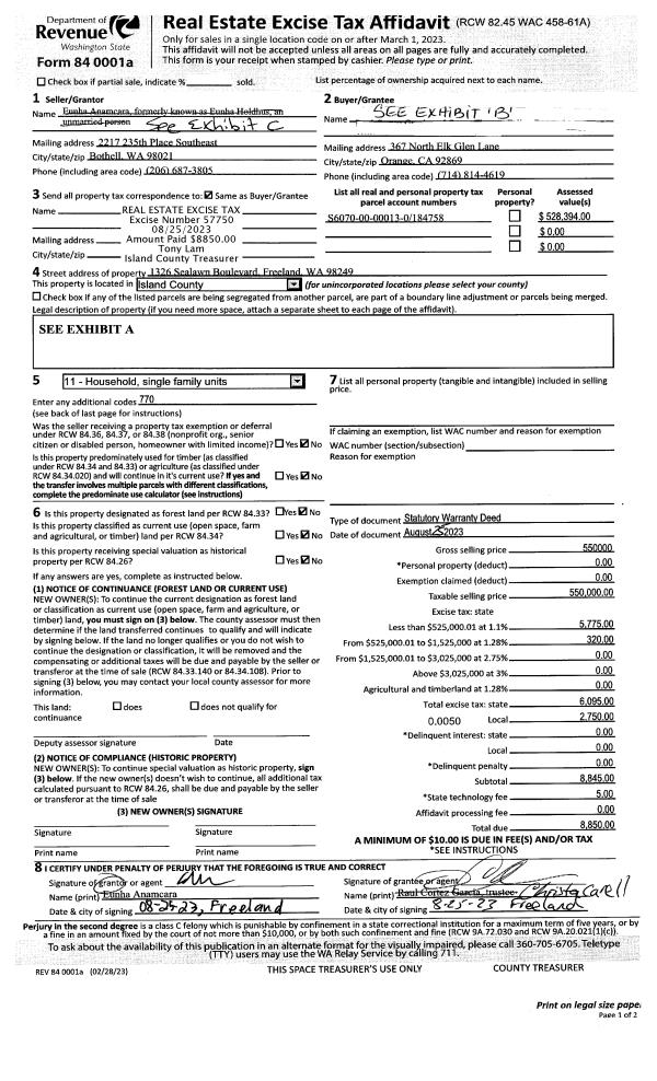 | Mailing Address: | RUSSELL WHITE 977 E CRECENT HARBOR RD OAK HARBOR, WA 98277 | % Ownership: | 100.0000000000% |