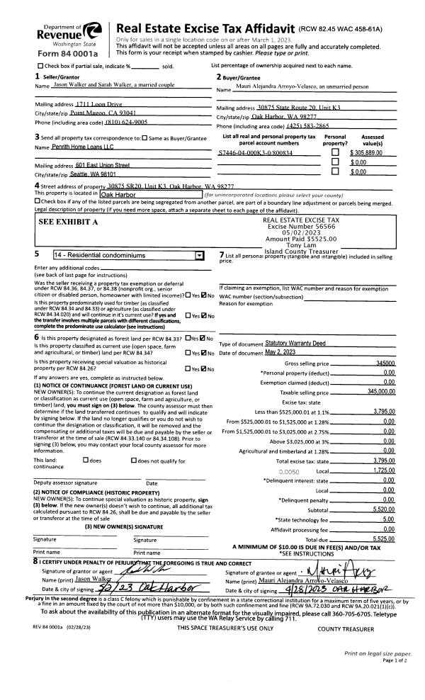 | 2 | 05/02/2023 | WD | Warranty Deed | WALKER, JASON | ARROYO-VELASCO, MAURI ALEJANDRA | | | $345,000.00 | 56566 | 4559432 |