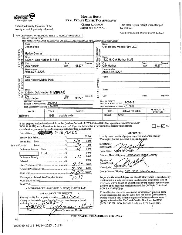 | 1 | 02/02/2025 | MANHOME | Manufactured Home | OAK HOLLOW MOBILE HOME PARK | KESTREL LLC | | | $100.00 | 63118 | |