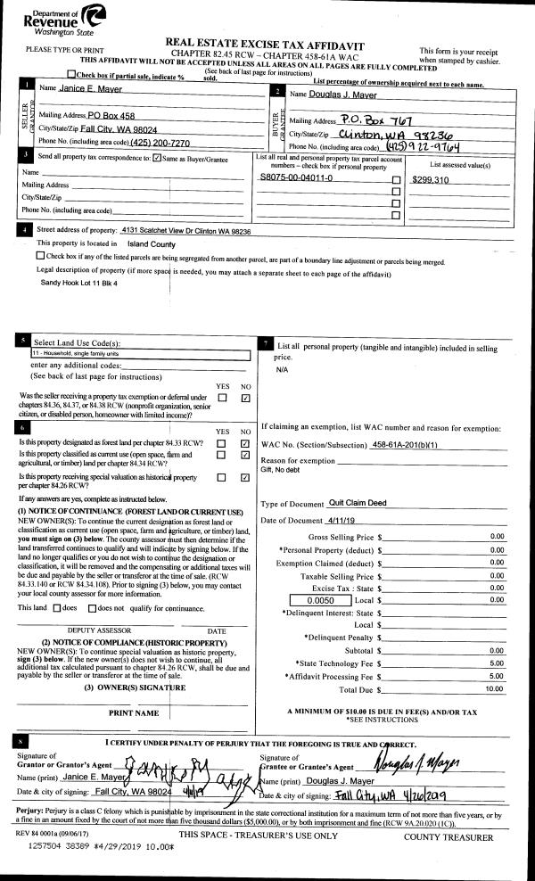 | 3 | 03/01/2019 | WD | Warranty Deed | RF OAK HARBOR, LLC (50.40%) | RF OAK HAROBR, LLC (17.65%) | | | $0.00 | 37769 | 4460000 |