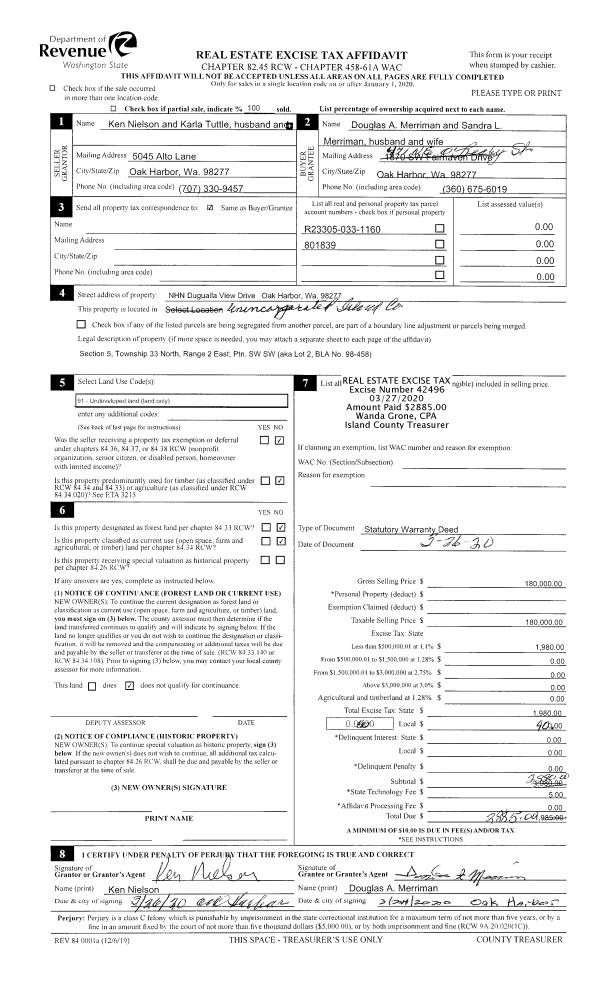 | 2 | 03/26/2020 | WD | Warranty Deed | NIELSON, KEN | MERRIMAN, DOUGLAS A | | | $180,000.00 | 42496 | 4483742 |