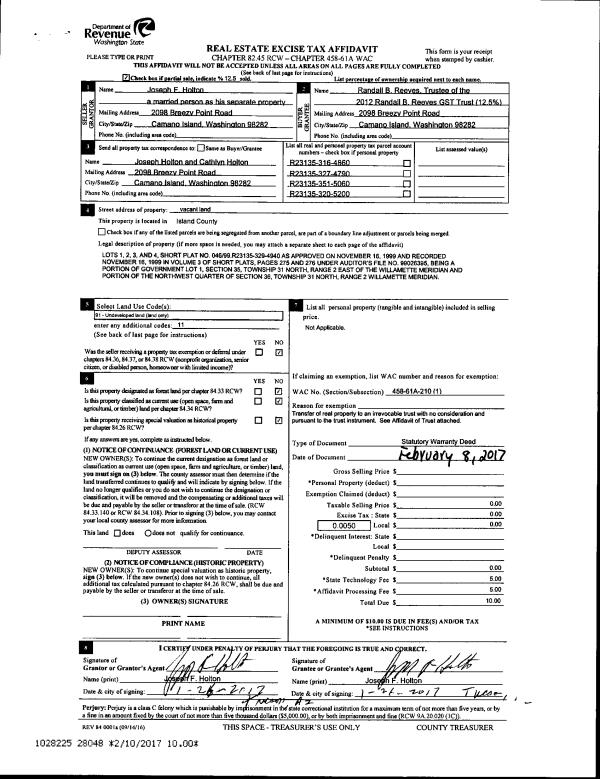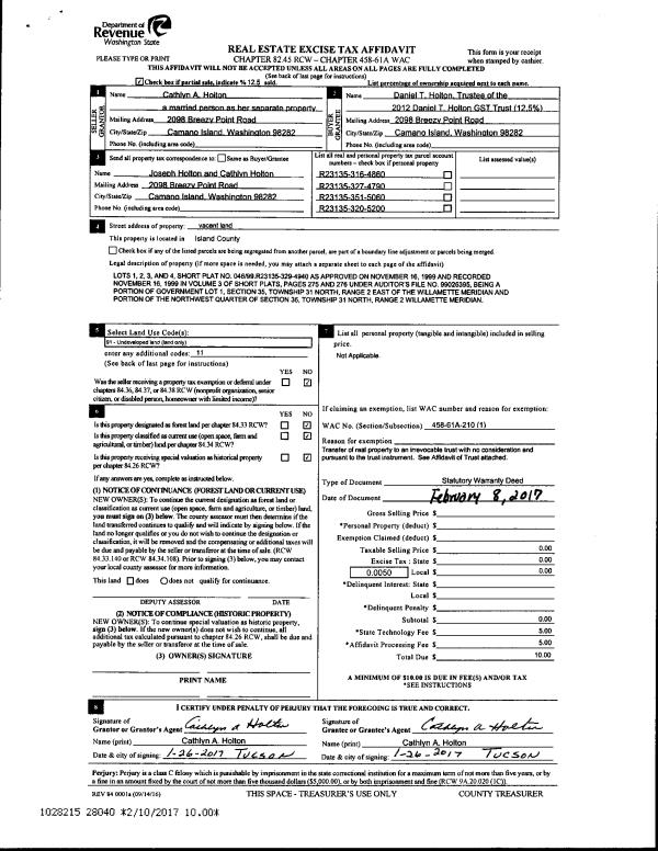 | 10 | 01/26/2017 | WD | Warranty Deed | HOLTON, JOSEPH F | HOLTON, JOSEPH F | | | $0.00 | 27995 | 4416659 |
