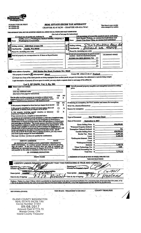 | Mailing Address: | JAMES YUN-JONG CHEN 5363 MUTINY BAY RD FREELAND, WA 98249 | % Ownership: | 100.0000000000% |