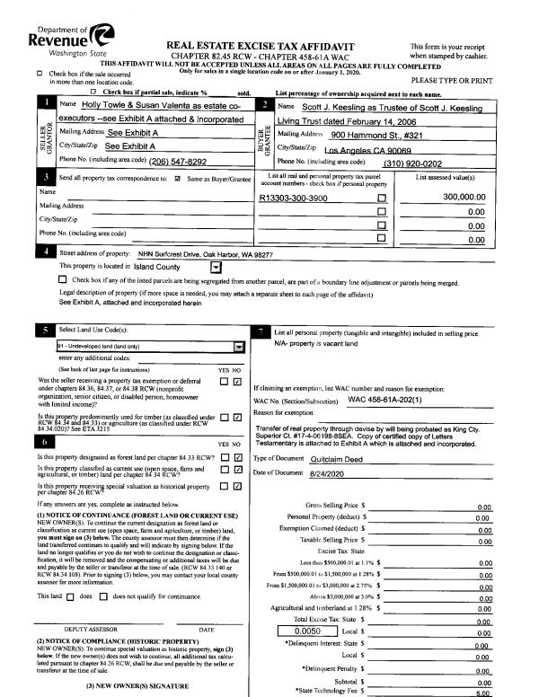 | 1 | 08/24/2020 | QCD | Quit Claim Deed | ESTATE OF MAXINE KEESLING | KEESLING TTEE, SCOTT J | | | $0.00 | 44399 | 4494651 |